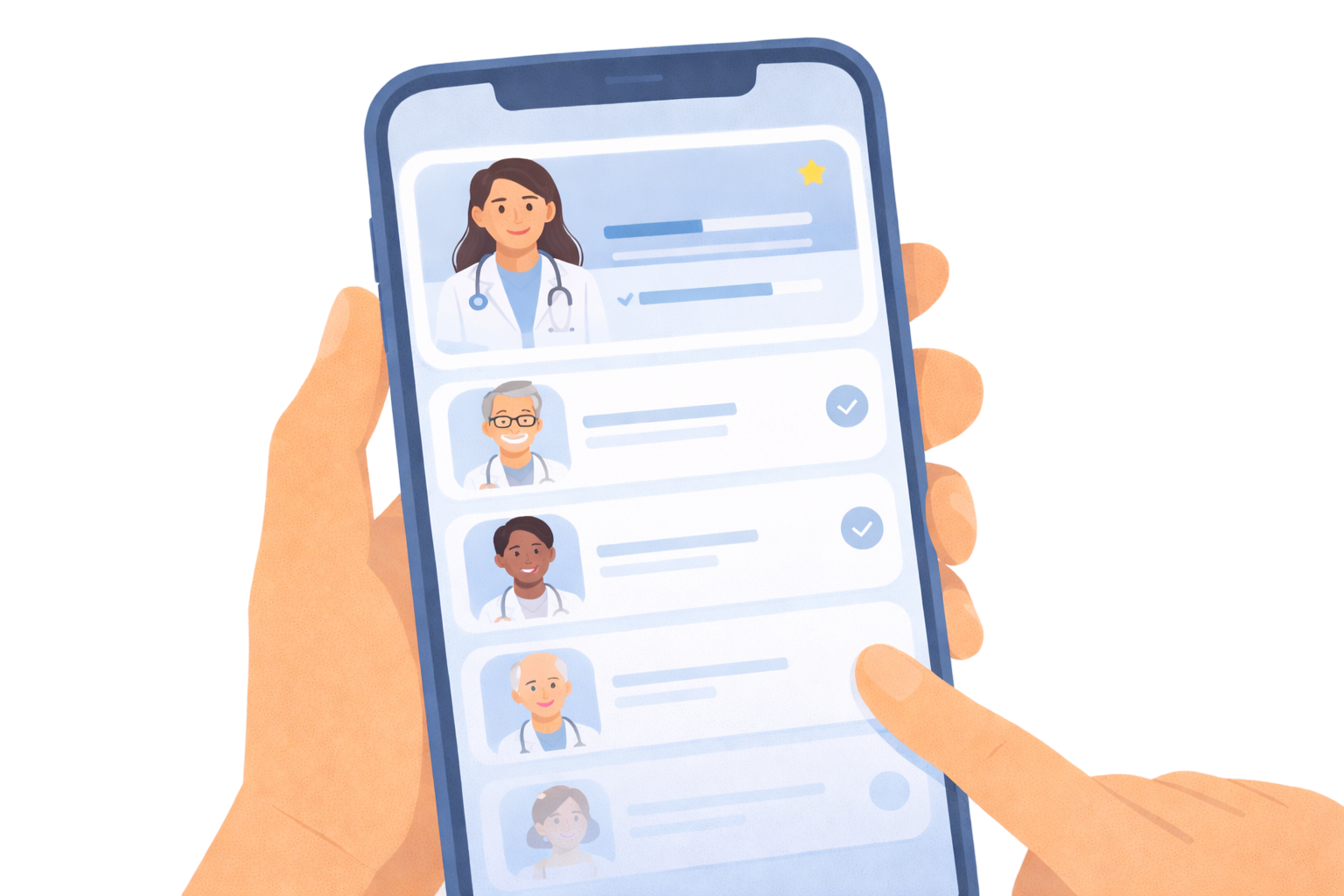 o paciente seleciona o médico que melhor se adequa (especialidade, disponibilidade, forma de atendimento).